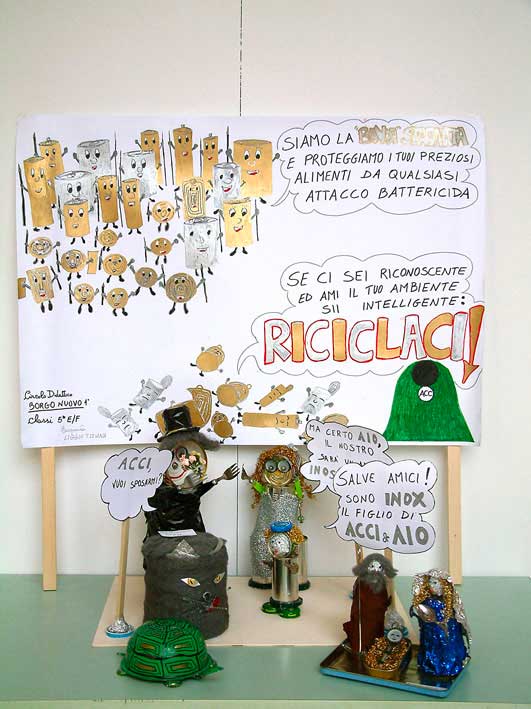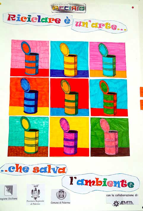 Si tratta di produzioni dai notevoli contenuti tecnici e qualitativi, nei quali gli autori, in genere intere classi di scuola media, hanno dato prova di grande padronanza dei linguaggi propri della comunicazione visiva. Tra i manufatti, invece, si segnalano alcuni pregevoli lavori in cui l’assemblaggio di prodotti di recupero, come le bombolette e i barattoli viene impreziosito con l’adozione di tecniche decorative complesse e di singolare impatto visivo, come la sabbiatura, la verniciatura, il mosaico e il decoupage.